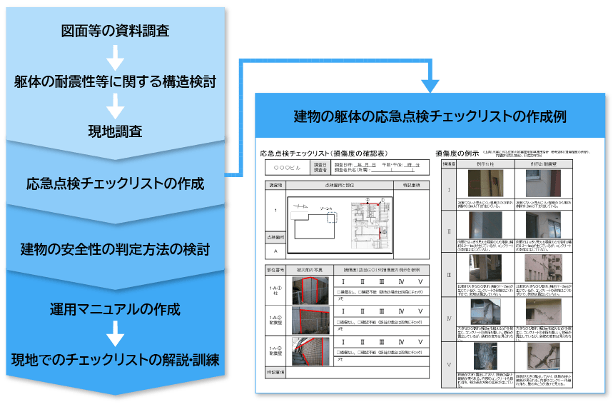 さまざまな自然災害の影響評価、建物・施設の調査と被害の定量的算定、BCP支援などを提供します。