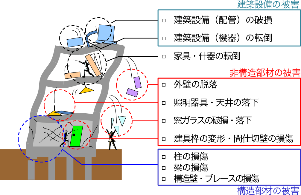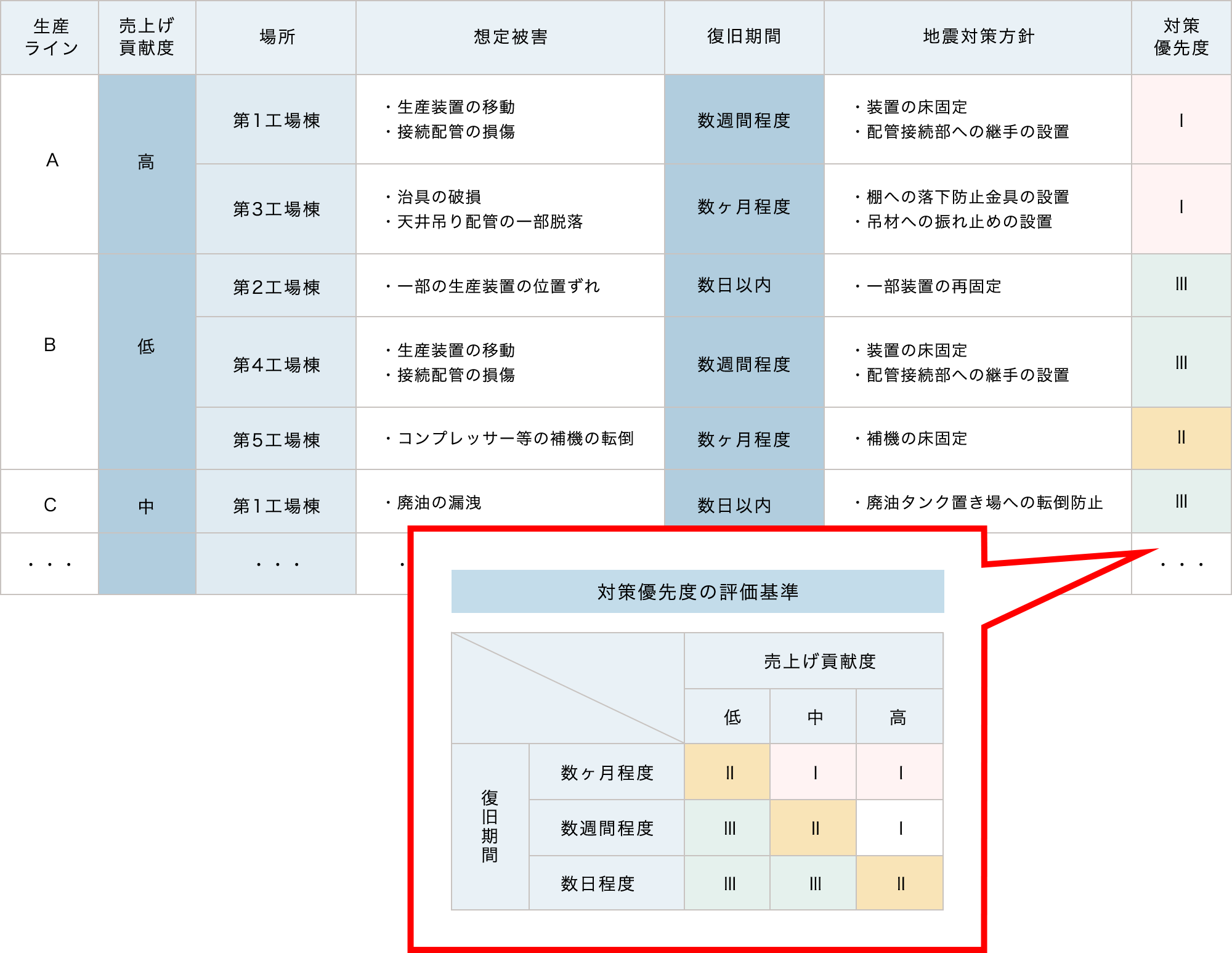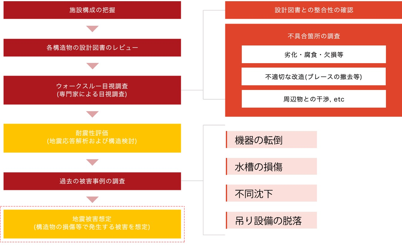 耐震診断は、人命安全や資産保護のために、耐震補強の必要性を判断することが目的で、事業中断や物的損失が発生しないことを保証するものではありません。